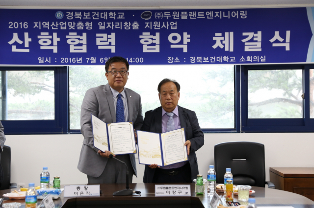 협약식에는 이은직 경북보건대학교 총장과 이창구 두원플랜트엔지니어링 대표를 비롯한 양 기관 관계자 10여 명이 참석했다.