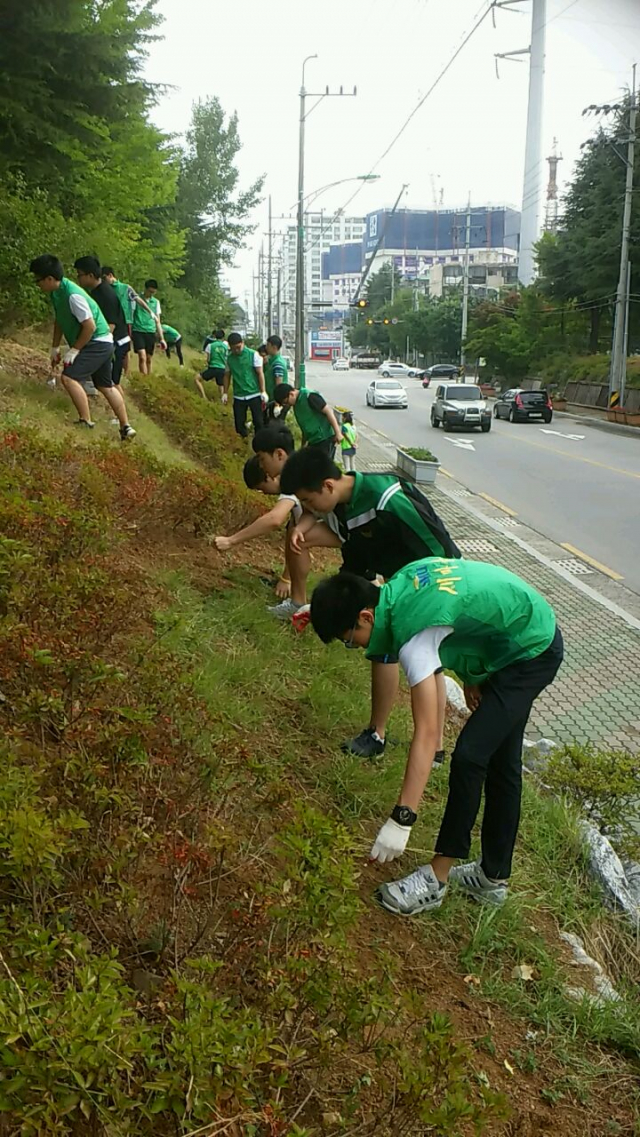 지난 1일에도 아침7시부터 동아리 회원 30명은 공단1동 주민과 함께 학교 담장 부근 가로변에 떨어진 쓰레기를 줍고, 울타리 주변 잡초를 제거하는 등 새마을대청소를 실시했다.