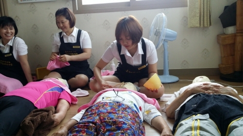 이날, 12통 경로당 어르신 30여명은 피부미용의 스팀타월, 회복크림, 고무팩과 함께 혈액순환의 다리 지압 등 부드러운 손길과 따뜻한 마음이 넘치는 행복한 시간을 보냈다.