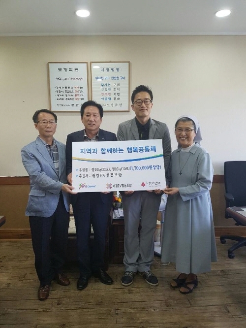 구미시가 지난 24일 복지환경국장실에서 대경EV 협동조합(조합장 김정완)이 창립기념식을 통해 마련한 양곡 42포(170만원상당)포를 사회복지시설에 전달하는 기탁식을 가졌다.
