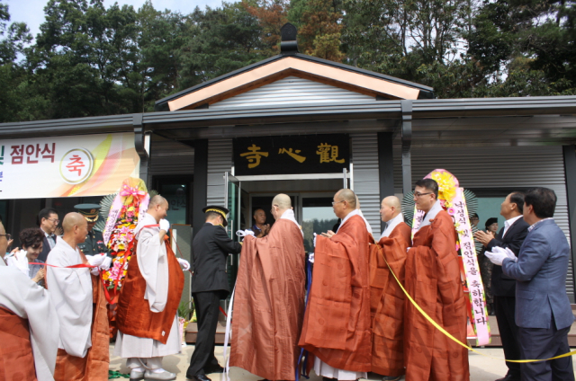 구미시 소재 육군 50사단 낙동강연대 신축 법당인 관심사 점안식 및 낙성 법회가 25일 열렸다.