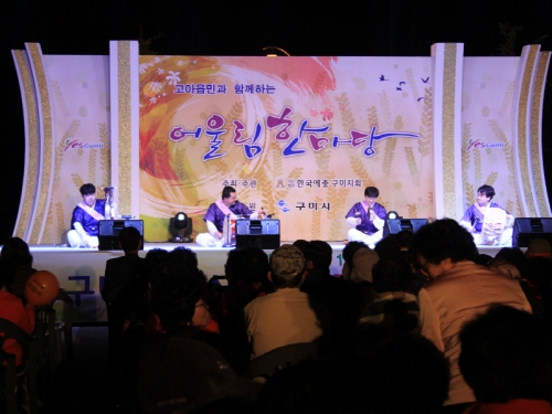 정찬미 아나운서의 오프닝으로 시작된 행사는 국악, 성악, 가요, 댄스 등 다양하게 구성된 ‘2016 Art In Gumi’ 축하공연과 부대행사인 먹거리 및 가훈쓰기 마당 순으로 진행됐다.