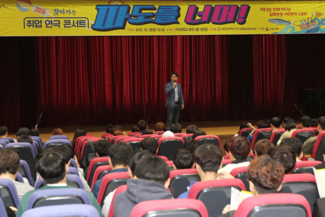 구미대학교(총장 정창주)가 18일 본관 대강당에서 재학생 200여명이 참석한 가운데 '찾아가는 취업 연극콘서트’를 열었다.