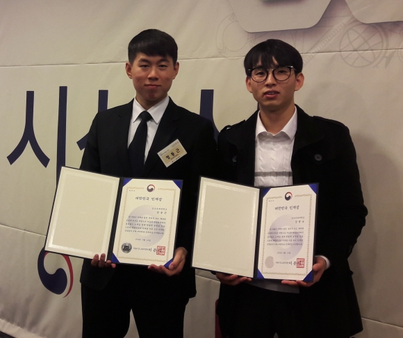 그 주인공은 바로 강병규(25․전자공학부 졸업), 정동근(23․기계공학과 4년)씨로 두 학생은 발명·창업 분야에서 두드러진 두각을 보이며 이번 수상의 영광을 안았다. 이로써 금오공대는 2012년 하재상(전자공학부 졸업), 2014년 최현진(소재디자인공학과 졸업), 2015년 이상욱(기계시스템공학과 4년)씨에 이어 두 명의 인재를 또 배출하게 됐다.