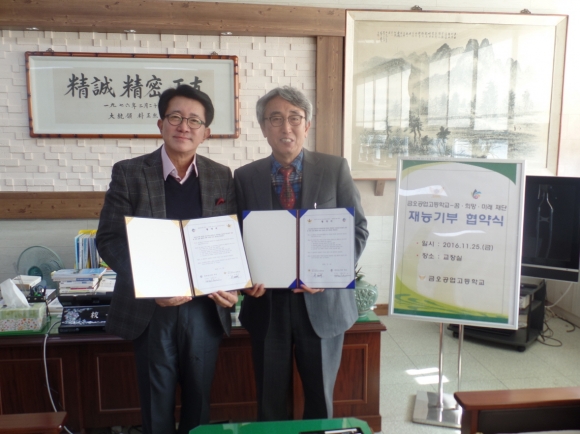 기계·전자 모바일 분야 마이스터고인 금오공업고등학교(교장 이형규)가 25일 사회복지법인 꿈․희망․미래 재단(이사장 스티브 김)과 재능기부 협약을 체결했다.