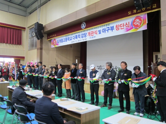 구미시 도개중고등학교(교장 황태숙)가 25일 다목적 강당 드림관 개관식 및 중등부 및 고등부 야구부 창단식을 가졌다.
