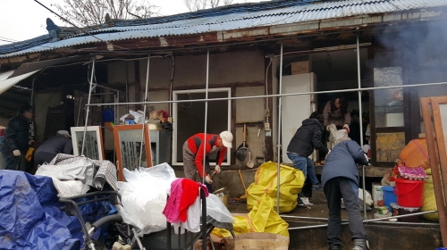 노후된 연탄보일러를 교체하고 배관공사에 이어 고장난 냉장고를 새 것으로 바꾼 회원들은 방풍․ 방한공사에 이어 청소까지 했다.
