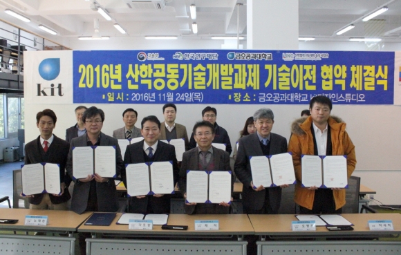 금오공과대학교(총장 김영식) LINC사업단이 24일 kit 디자인스튜디오에서 ‘산학공동 기술개발과제 기술이전 협약식’을 가졌다.