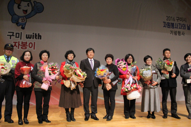 구미시가 주최하고, 구미시 종합 자원봉사 센터(소장 김봉재)가 주관한 ‘2016 구미시 자원봉사자의 날 기념행사’가 6일 구미시 민방위교육장에서 열렸다.