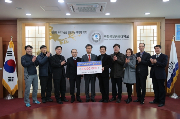 전달식에는 김영식 총장을 비롯해 원종욱 금오공대 석·박사원우회 회장, 곽현근 (주)대경테크노 대표 등 동문 및 기업 등이 자리해 대학 발전을 위한 모금에 동참했다.