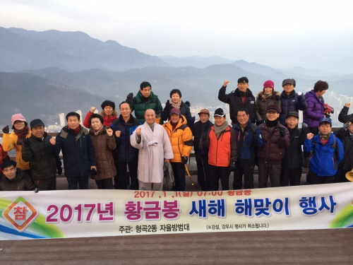 형곡2동(동장 김성호) 자율방범대(대장 김영하)가 1일 오전 7시 황금봉에서 주민 400여명이 참여한 가운데 2017년 황금봉 새해 해맞이 행사를 가졌다.