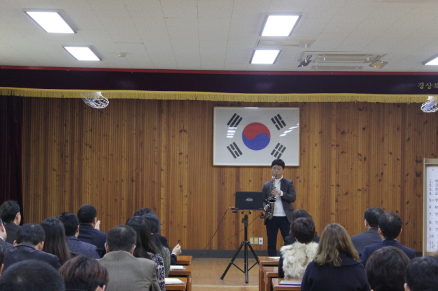 이번 새해 다짐식은 박석홍 교사(형곡초)의 색소폰 축하 연주와 구미의 역사와 인물, 전통을 주제로 한 전정중 교사(현일고)의 인문학 강의를 함께 실시해 직원 모두가 한해를 힘차고 즐겁게 시작할 수 있는 시간이 됐다.