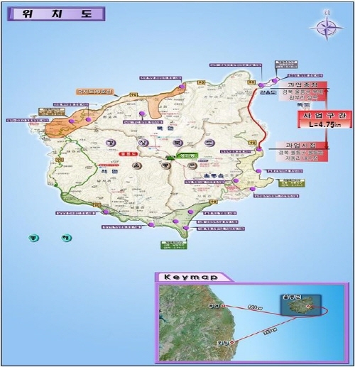 울릉군 울릉읍 저동리에서 북면 천부리 21.1km 구간의 기존도로를 개량하는 사업으로 터널 5개소와 피암터널 5지구를 건설하고, 도로폭 협소구간․낙석위험구간․해안저지대 월파구간 등을 개량한다.