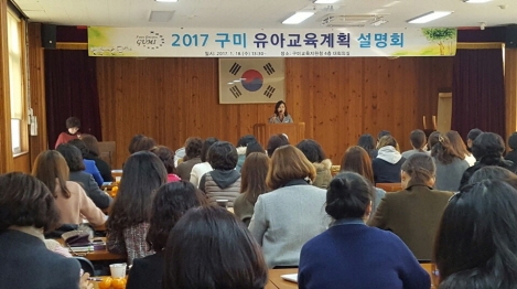 구미교육지원청이 18일 4층 대회의실에서 공·사립유치원 교사 100여명이 참석한 가운데 ‘사랑으로 꿈을 키우는 행복한 유아교육 실현’을 위한 ‘2017 구미유아교육 설명회’를 열었다.
