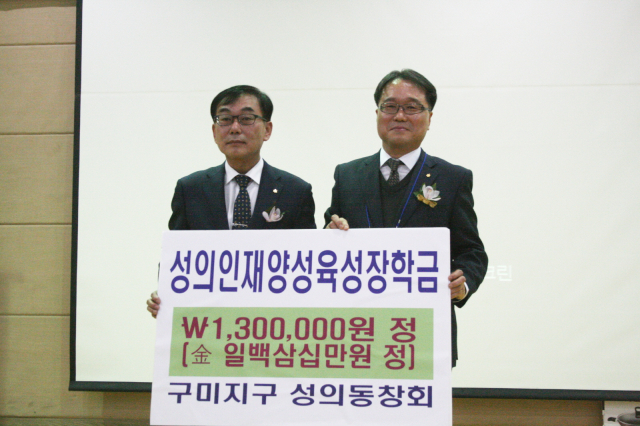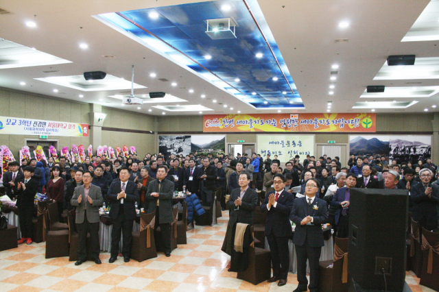 양심과 성실, 근면을 교훈으로 지역 사회 발전의 밀알 역할을 해온 구미지구 성의 동창회 신년 교례회에는 정재승 교장과 박인발 총동창회장, 정하동 교감, 윤창욱 도의원, 이태식 도의원, 및 동문 300여명이 참석해 행사장을 가득 메웠다.