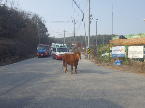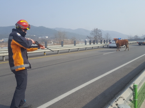 19일 오후 2시 10분경 구미시 산동면 적림리 25번 국도상에 난데없는 소가 나타나 잠시 교통이 마비됐다. 신고를 받고 출동한 구미소방서 119 구조구급센터는 도로를 통제하고 마취총을 이용해 소를 포획하려고 했으나 실패했다. 결국 경찰차와 소방차, 구급차를 이용, 근처 우사에 소를 몰아넣으면서 소동은 일단락됐다.