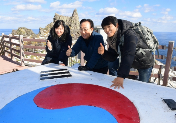설 명절을 앞둔 25일, 김관용 경북 도지사가 독도를 전격 방문했다.