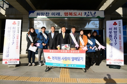지난 해 11월 21일부터 2017년 1월 31일까지 72일 동안 진행된 희망2017 나눔캠페인에서 김천시가 목표액 대비 200%를 달성했다. 기부자(단체)는 1천3백여명,모금액은 8억원이었다.