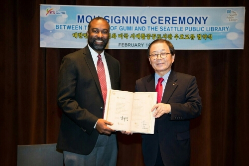 이번 협약은 지난 해 10주년을 맞은 한책 하나구미 운동의 발상지인 시애틀 공공도서관(The Seattle Public Library, 이하 ‘SPL’)과의 교류를 통해 한책하나 구미운동을 국제적으로 발전시켜 나가기 위해 추진됐다.