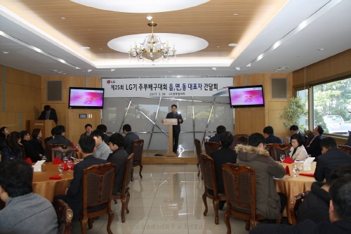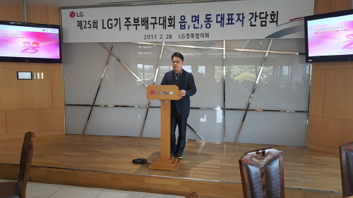 구미지역 5개 LG자매사 협의체인 LG경북협의회(LG전자, LG디스플레이, LG이노텍, LG실트론, 루셈)가 28일 LG 게스트하우스에서 제25회 LG기 주부배구대회 읍면동 대표자 간담회를 가졌다.