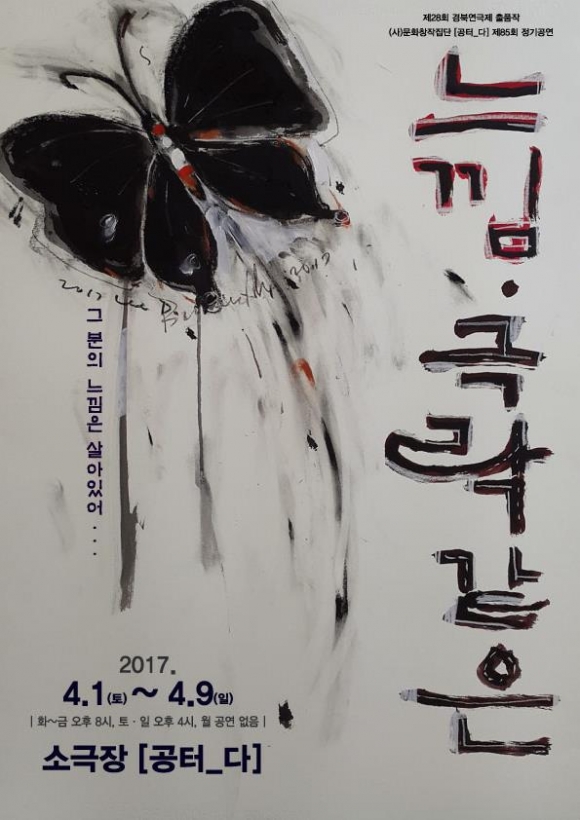(사)문화창작집단 공터_다(대표 황윤동)가 오는 4월 1일부터 9일까지 소극장공터다(구미시 금오시장로 4, 지하)에서 연극 '느낌, 극락같은'(작/이강백, 연출/황윤동)을 무대에 올린다.
