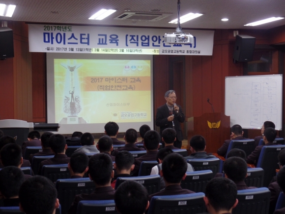 기계⋅전자분야 모바일 마이스터고인 금오공업고등학교(교장 이형규)가 13일부터 3일간 학년별로 직업안전교육 및 마이스터 정신교육을 실시했다.