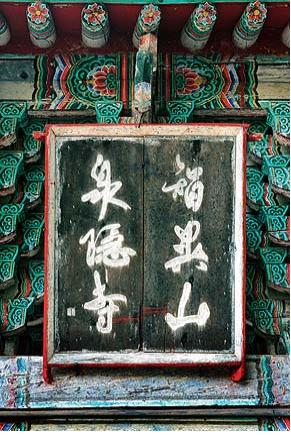 智異山泉隱寺. 천은사 일주문에 걸린『지리산 천은사(智異山泉隱寺)』현판글씨이다.