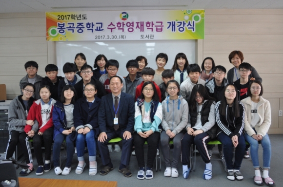 봉곡중학교(교장 안태표)가 지난달 30일 도서관에서 2017학년도 수학영재학급 개강식을 가졌다.