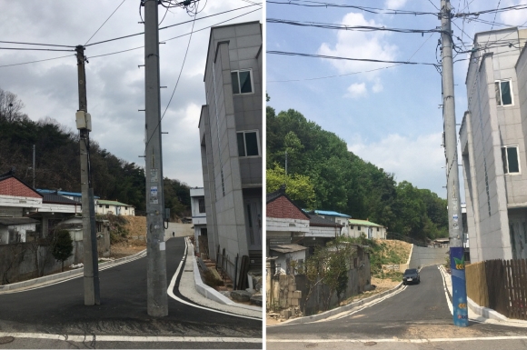 | ↑↑ 구미시 지산동 일원 도로의 전신주 1개를 이설 정리해 주민 호응을 얻고 있다. |
