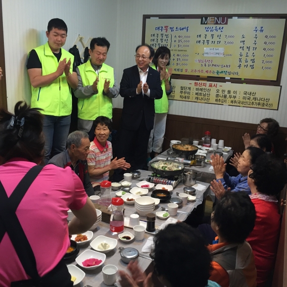 박 의룡 대표는 “가게를 운영하면서 주변에 어르신이 많이 다니시는 걸 보고, 자주 뵙고 건강도 챙겨드렸으면 하는 마음에서 나눔 봉사를 시작하게 되었다”며 “앞으로도 매달 넷째주 월요일에 어르신 15~6명을 초대해 식사를 대접하겠다”고 약속했다.
