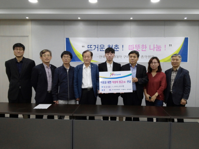 구미시 공단1동(동장 황종영)이 지난 12일 한국폴리텍 대학 구미캠퍼스(학장 이세균) 총학생회(회장 서재필)로부터 이웃돕기 성금 100만원을 전달받았다.
