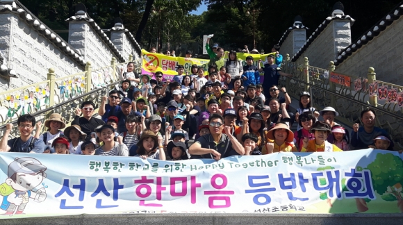선산초등학교(교장 서옥선)가 27일 인성교육의 일환으로 학생과 학부모, 교원들이 함께 참여하는 선산 한마음 등반대회를 실시했다.