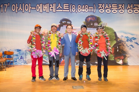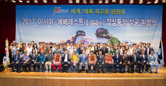 백승주 국회의원, 김익수 의회 의장, 경북산악연맹 회장과단 각 시·군 연맹임원 등 산악인 300여명이 참석한 가운데 진행된 환영식에서 남유진 시장은 “에베레스트 등정 성공으로 구미가 세계 속의 명품도시임을 입증하는 계기가 되었다”면서 “43만 구미시민에게 무한한 자신감을 심어준 원정대의 무사귀환을 환영한다”고 말했다.