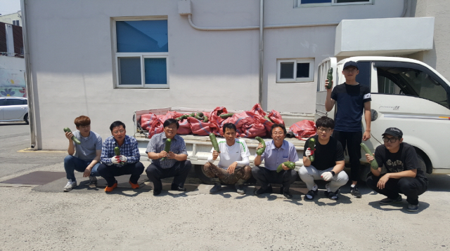 오로 정승마을 영농조합법인(대표 이종포, 오로1리 이장)이 지난 19일 어려운 이웃에게 전달해달라며 호박(쥬키니) 450개를 구미시 장천면(면장 문창균)에 기증했다.