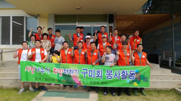 구미회(회장 김성호)가 24일 구미시 도개면 사랑의 쉼터를 방문해 ‘사랑나누기, 희망더하기’를 모토로 봉사 활동을 실시했다.