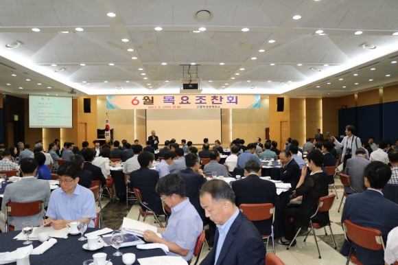 구미상공회의소(회장 류한규 이하 구미상의)가29일 2층 대강당에서 6월 목요조찬회를 가졌다.