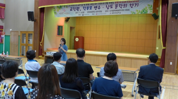 장천초등학교(교장 이시백)가 4일 꿈의전당 강당에서 ‘남도 문학의 향기’를 주제로 오전과 오후로 나눠 학부모와 교직원 연수를 실시했다.