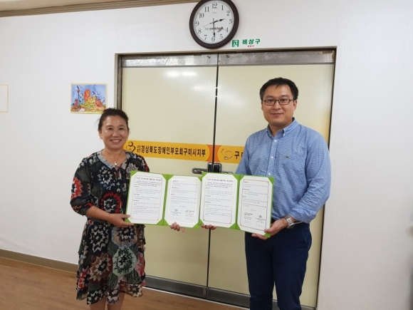 굿네이버스 경북 서부지부(지부장 박세정)가 저소득 가정 장애아동 지원을 위해 (사)경상북도 장애인 부모회 구미시지부(지부장 조현자)와 업무 협약식을 가졌다.