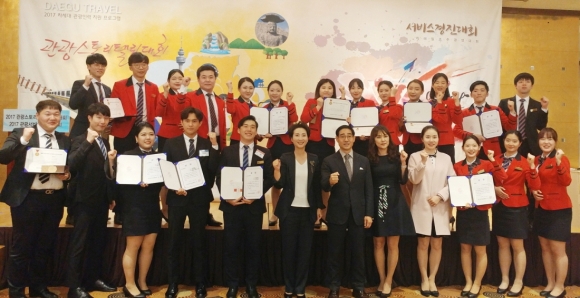 구미대학교(총장 정창주)가 호텔관광전공(학과장 석미란) 학생들이 지난 2일 대구그랜드호텔에서 열린 ‘관광스토리텔링, 관광서비스 경진대회’에서 전원이 수상하는 쾌거를 거뒀다고 밝혔다.