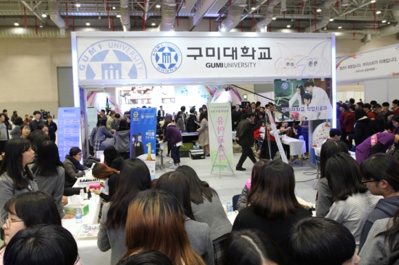 7년 연속으로 참가한 구미대는 ‘마이스터 홍보관(특성화 홍보관)’에 독립부스를 마련해 비주얼게임컨텐츠스쿨, 유아교육과, 작업치료과, 헤어메이크업뷰티디자인과 등 4개 학과가 특성화 대학에 맞는 직업 체험프로그램을 선보였다.