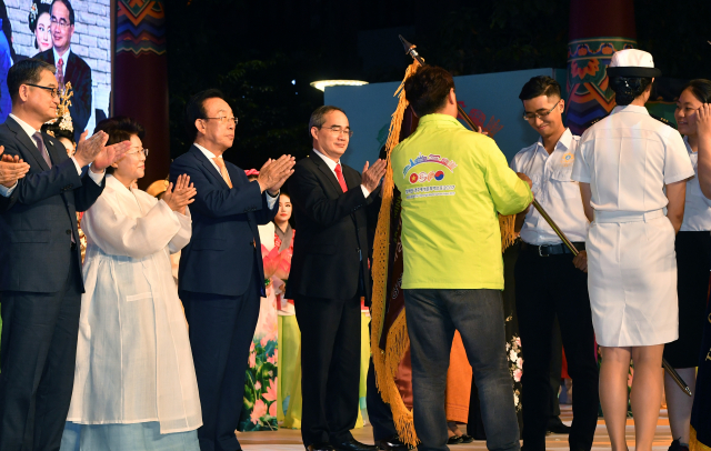 또 32일간 아시아 5개국을 거치는 1만2000㎞ 대장정을 마치고 돌아온‘실크로드 청년문화교류 대장정’ 대표단과 베트남을 13일간 종단한 ‘한·베 청년 공감로드쇼’ 대표단이 도착을 보고하며 깃발을 전달하는 것으로 개막식 대단원의 막을 내렸다.