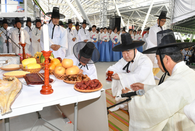 유교문화공연은 서제(序祭, 告由祭)를 시작으로 조상공경 문화행사인 석전제, 술 마시는 예법을 시연하는 향음주례 순서로 진행됐다.