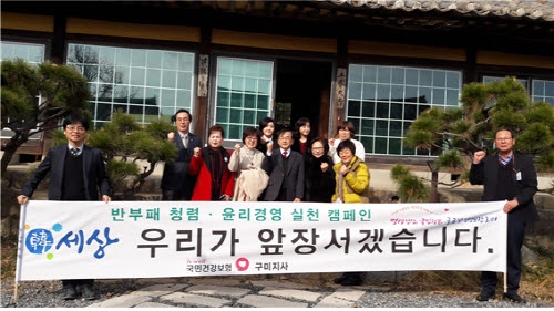 국민건강보험공단 구미지사(지사장 김후식)가 지난 29일 2017년 반부패 청렴도 향상을 위한 민간단체 초청 간담회를 가졌다. 이날 간담회에는 구미시 여성단체협의회 이재숙 회장 등 6개 단체회장이 참석한 가운데 새 정부 건강보험 보장성 강화 및 치매 국가책임제 장기요양서비스 지원 강화, 신규 부과자료 적용 등 현안을 논의했다.