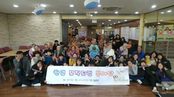 이날 학생 32명과 교사 5명은 어르신들에게 양말을 선물하고 음악재능기부를 통해 어르신들과 즐거운 시간을 보냈다.