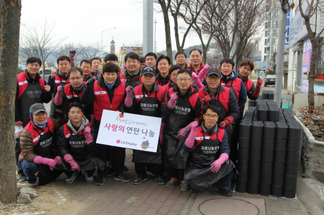 구미 LG디스플레이 계장회(회장 노정열)가 4일 구미 금오종합사회복지관(관장 법등)에 사랑의 연탄나눔 후원금을 전달했다.