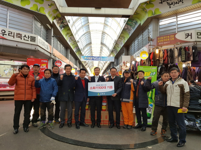 (주)금복주 구미지점(지점장 김용석)이 동절기 전통시장 화재예방을 위해 20일 구미새마을중앙시장에 소화기 100대(250만원 상당)를 기증했다.