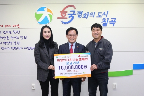 LG디스플레이 노동조합 구미지부(지부장 채근욱)가 어려운 이웃들의 따뜻한 겨울나기에 힘을 보태기 위해 칠곡군에 희망나눔 캠페인 성금 1천만원을 전달했다.