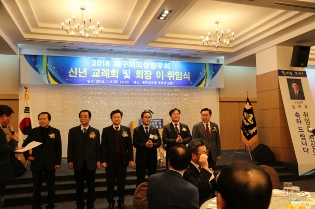재구미의성향우회가 지난 9일 구미 센츄리호텔에서 백승주 국회의원, 김주수 의성군수, 윤창욱·이태식 경북도의원, 김재상·윤종호 구미시의원을 비롯해 지역 기관단체장 및 회원 등 500여명이 참석한 가운데 신년교례회 및 회장 이·취임식을 가졌다.