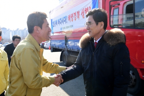 이사 첫날인 15일,포항시가 준비한 환동해 지역본부 이전 축하 환영식에는 포항시장, 장두욱 경북도의회 부의장 등 포항지역 도의원 등이 참석해 환영 축하 꽃다발과 기념품으로 벽시계를 전달한데 이어 직원들과 오찬을 함께했다.