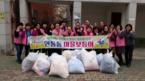 이날 봉사에는 인동동장과 마을보듬이 16명이 8조로 나눠 관내 독거노인 및 중증장애인 14세대를 직접 방문, 때가 찌든 겨울 이불을 깨끗하고 뽀송한 이불로 교체해 주기 위해 이불 수거를 하고 대상자들의 건강상태를 살피며 안부를 물었다.